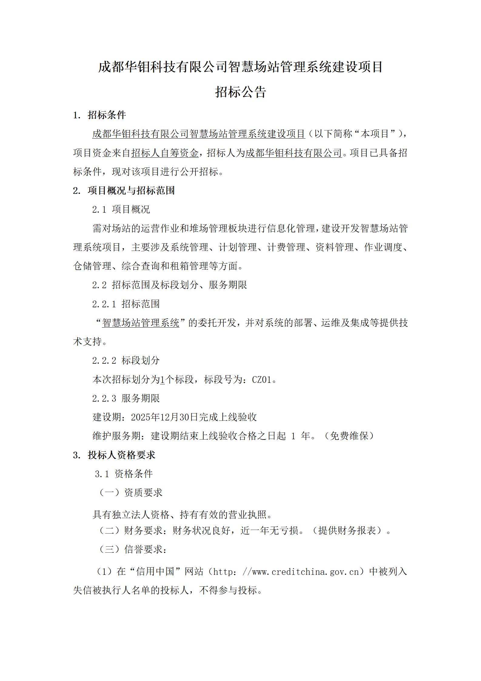 智慧场站管理系统建设项目招标公告
