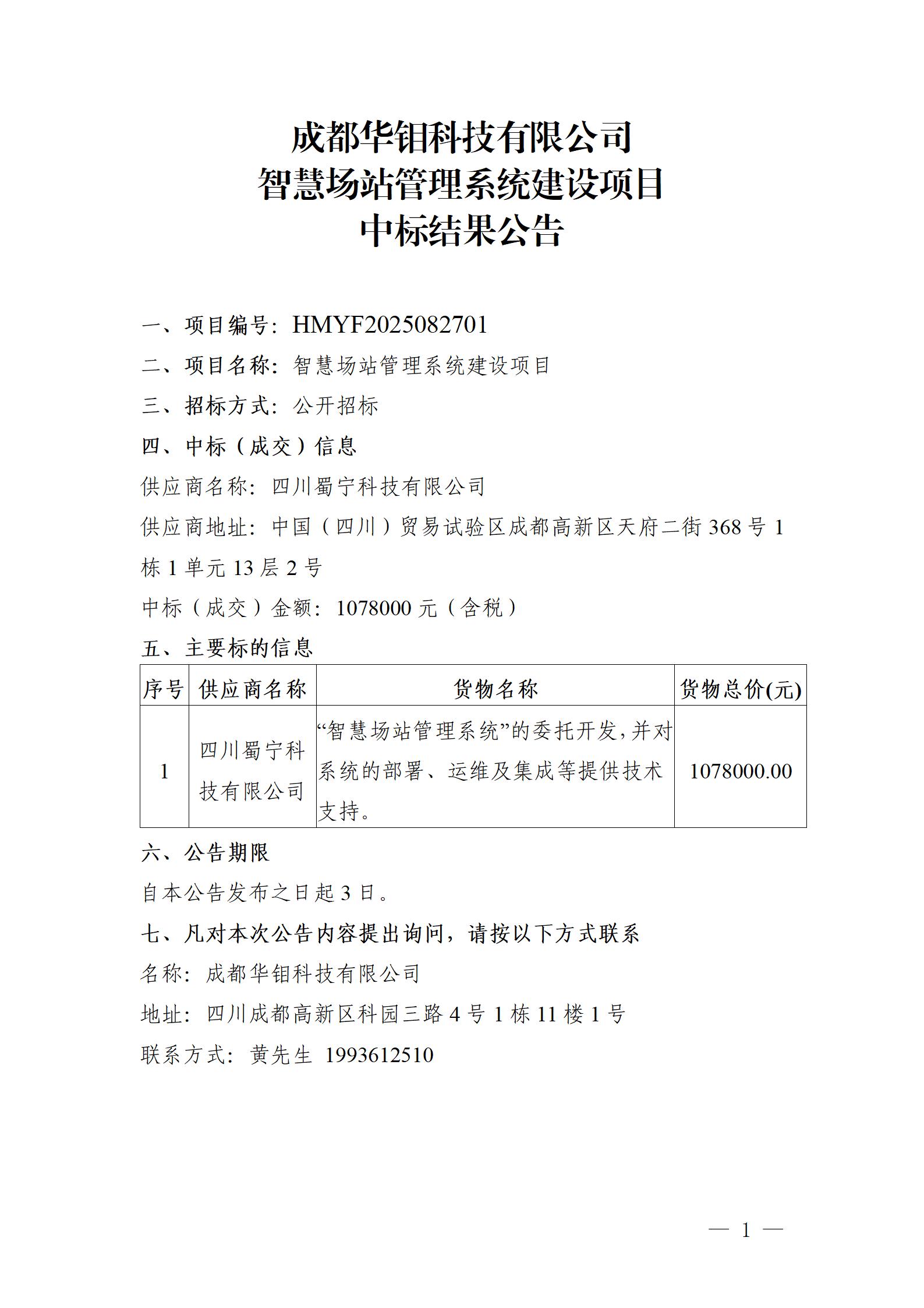 智慧场站管理系统建设项目中标结果公示