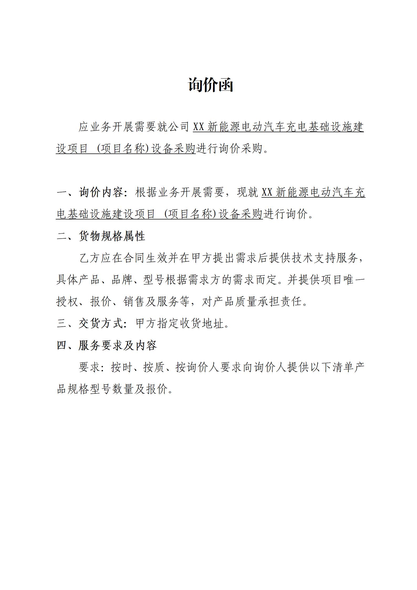 XX新能源电动汽车充电基础设施建设项目公开询价