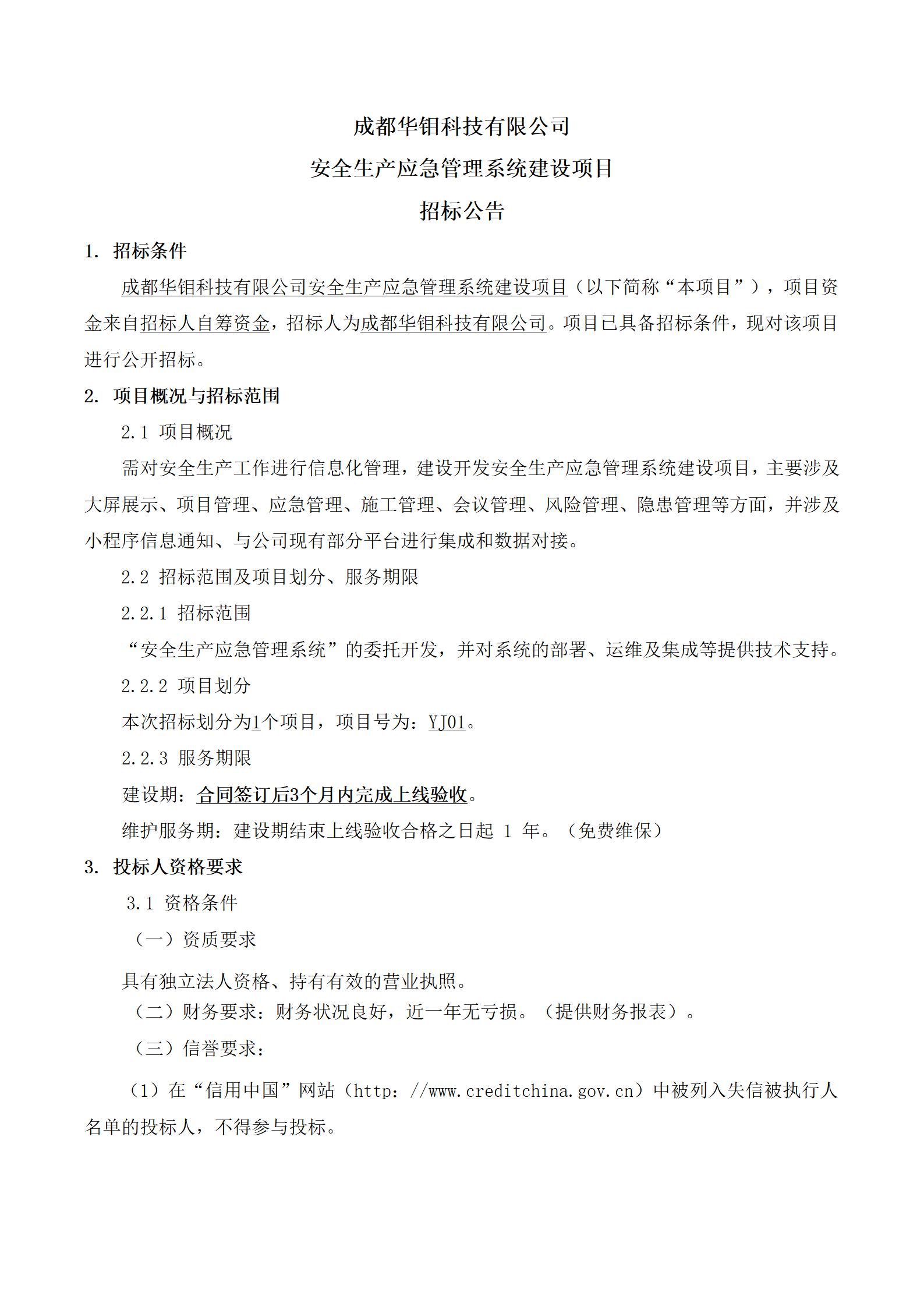 安全生产应急管理系统建设项目招标公告