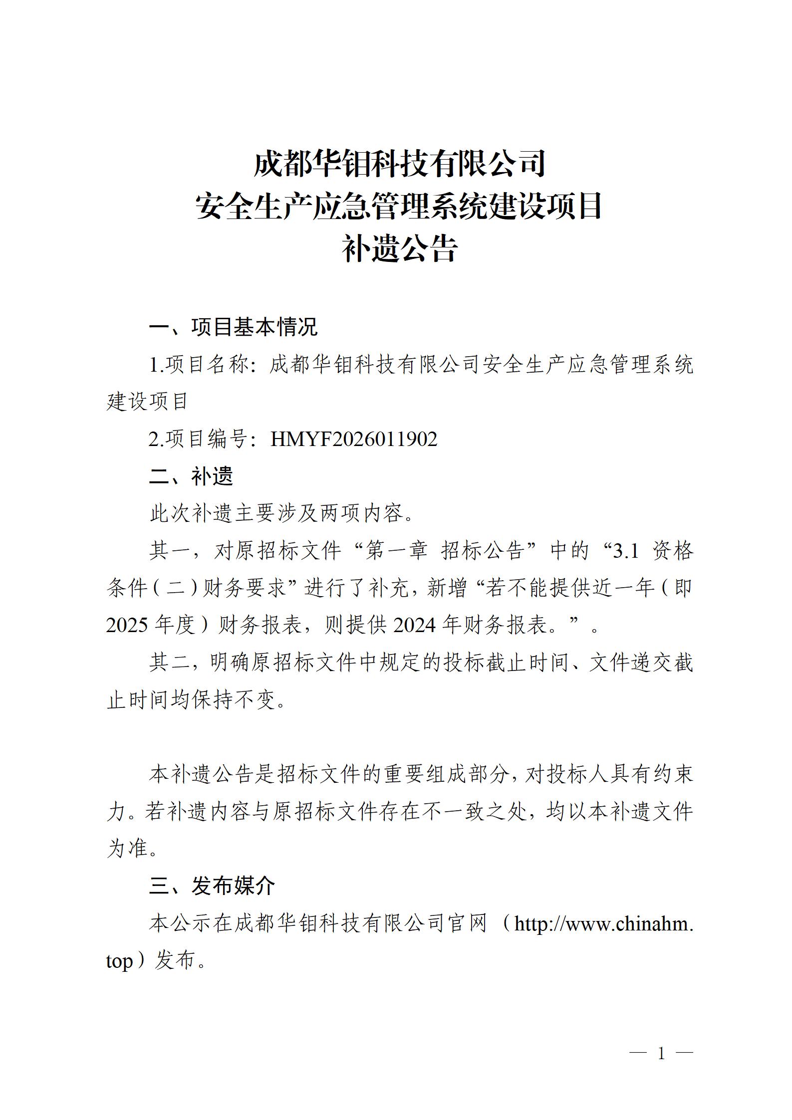 安全生产应急管理系统建设项目补遗公告