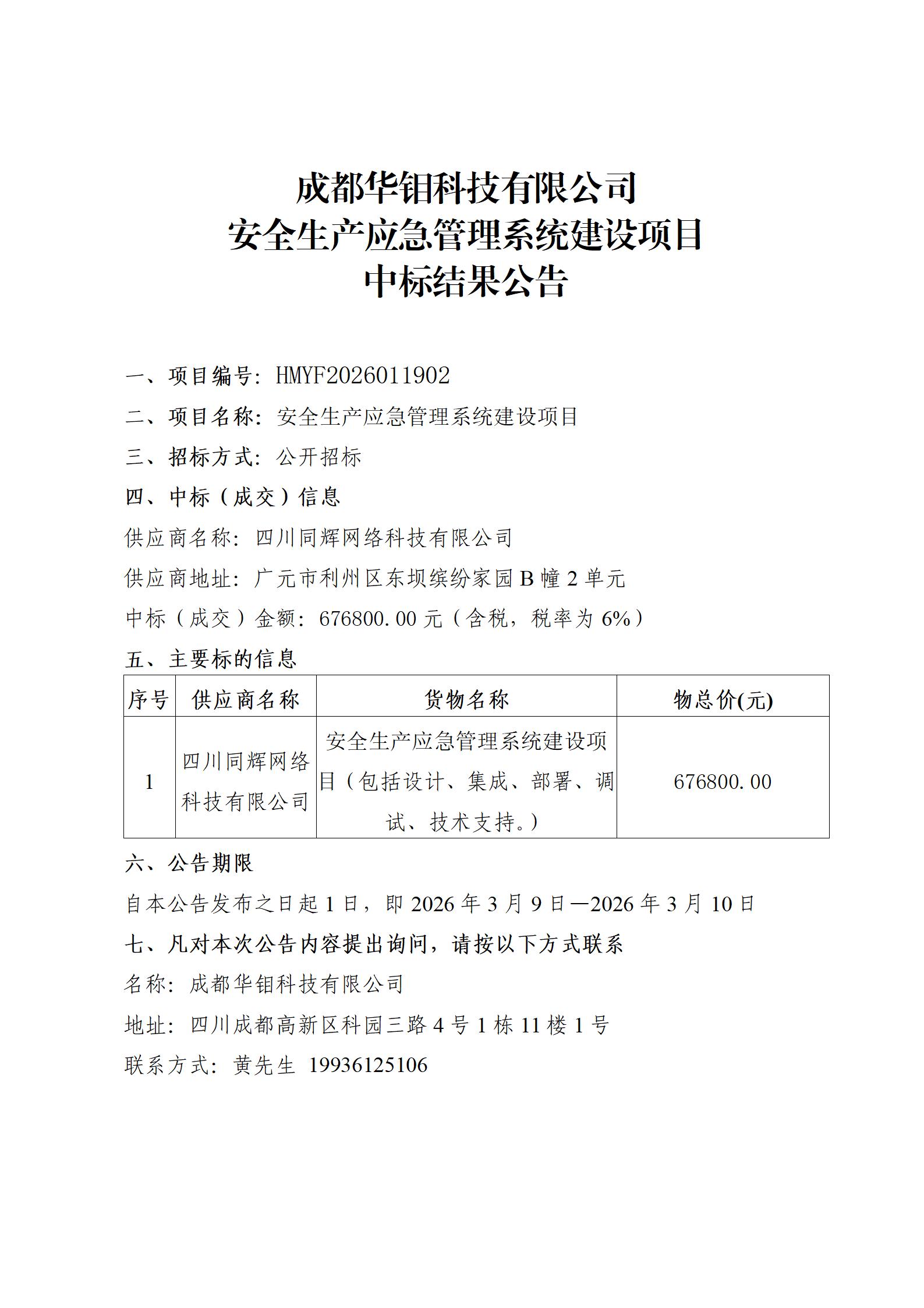 安全生产应急管理系统建设项目中标结果公示