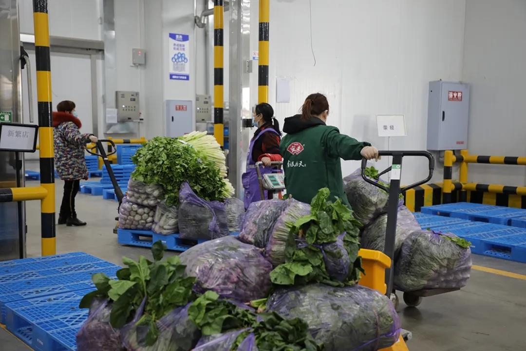在路威特物流园区,工人正将果蔬进行分拨,向成都市各大超市供应。