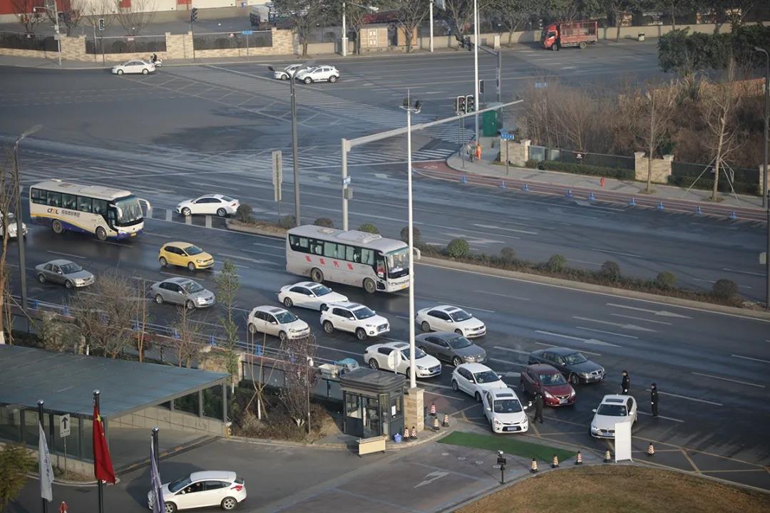 2月21日上午8点40分,成都国际铁路港物流大厦门口,车辆排行等待通过,路口又恢复了往日的拥堵和繁忙。
