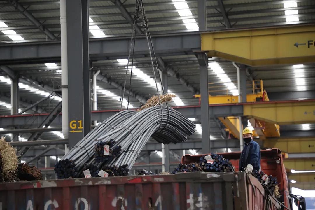 在成都国际铁路港的博川钢贸物流园区,价值十余亿的钢材正在转运。
